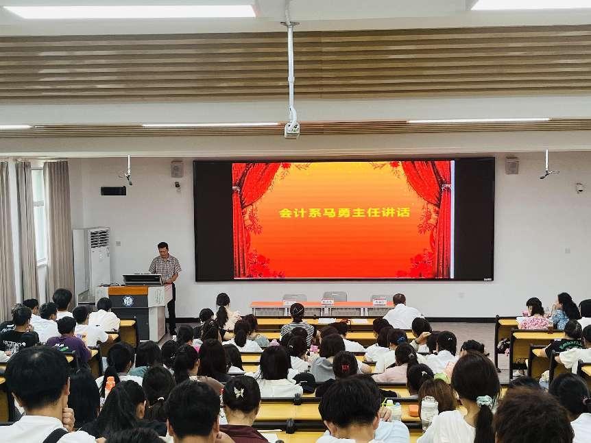 首先,马主任对会计学新生表示热烈欢迎,并介绍了会计系基本情况、教师团队、专业发展目标、人才培养等方面的内容。
