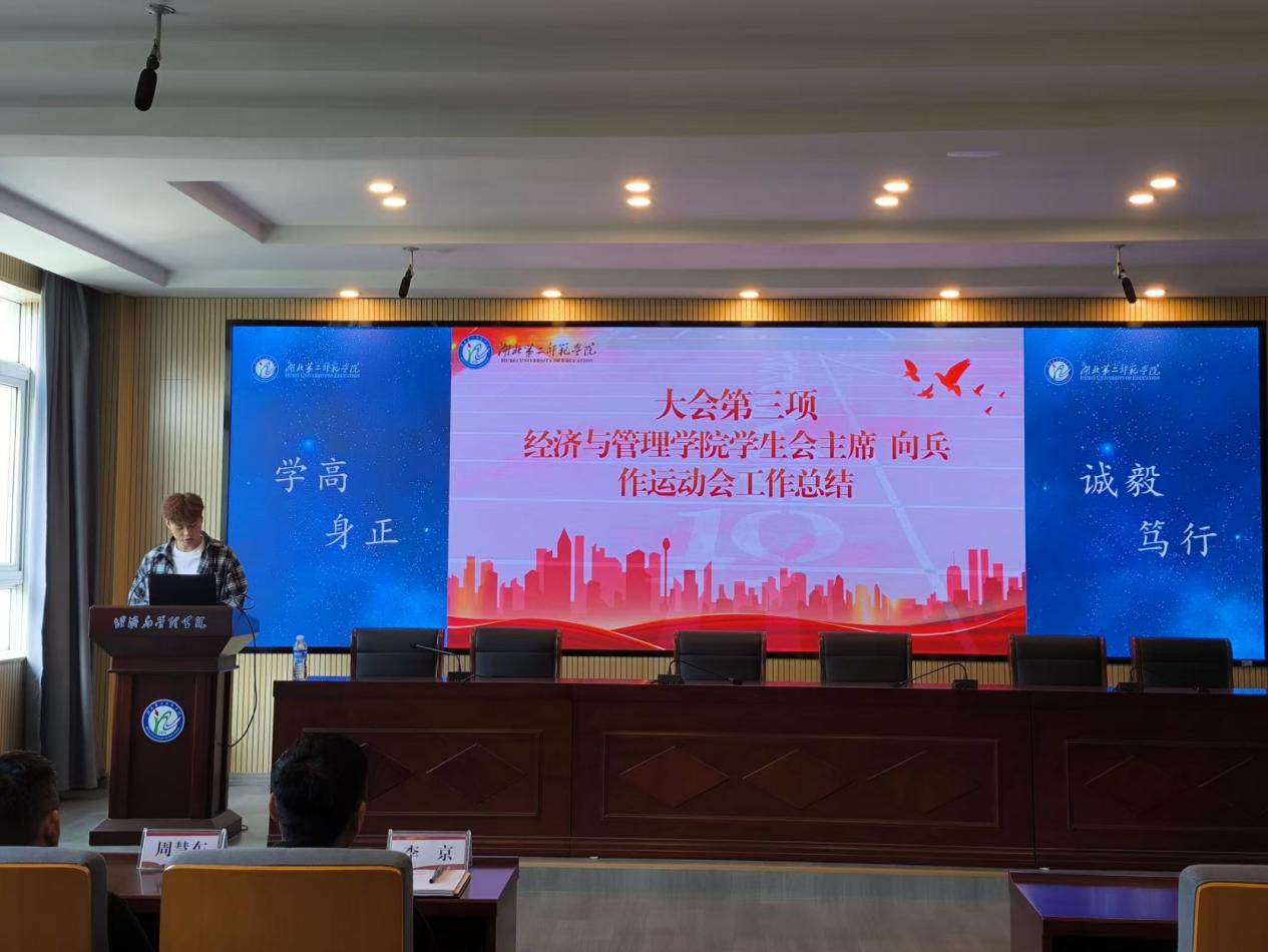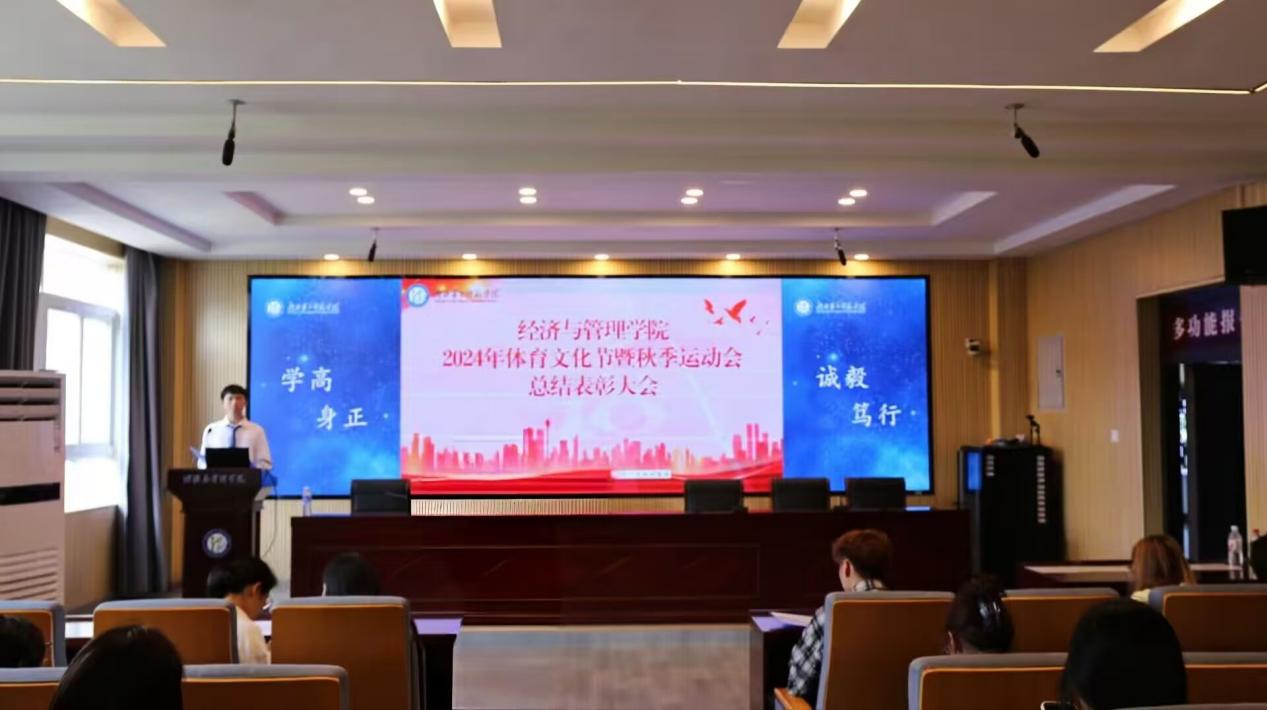 本网讯(通讯员 张俊)11月1日中午,williamhill英国(以下简称“经管院”)2024年体育文化节暨秋季运动会总结表彰大会在2号楼三楼报告厅举行。经管院党委副书记李京,学工办主任周慧东,团委负责人徐梅馨、张泉出席本次会议,分团委学生会主席团成员、学生运动员代表参加大会。经管院人力资源与公共关系部干事宋昱霖主持大会。