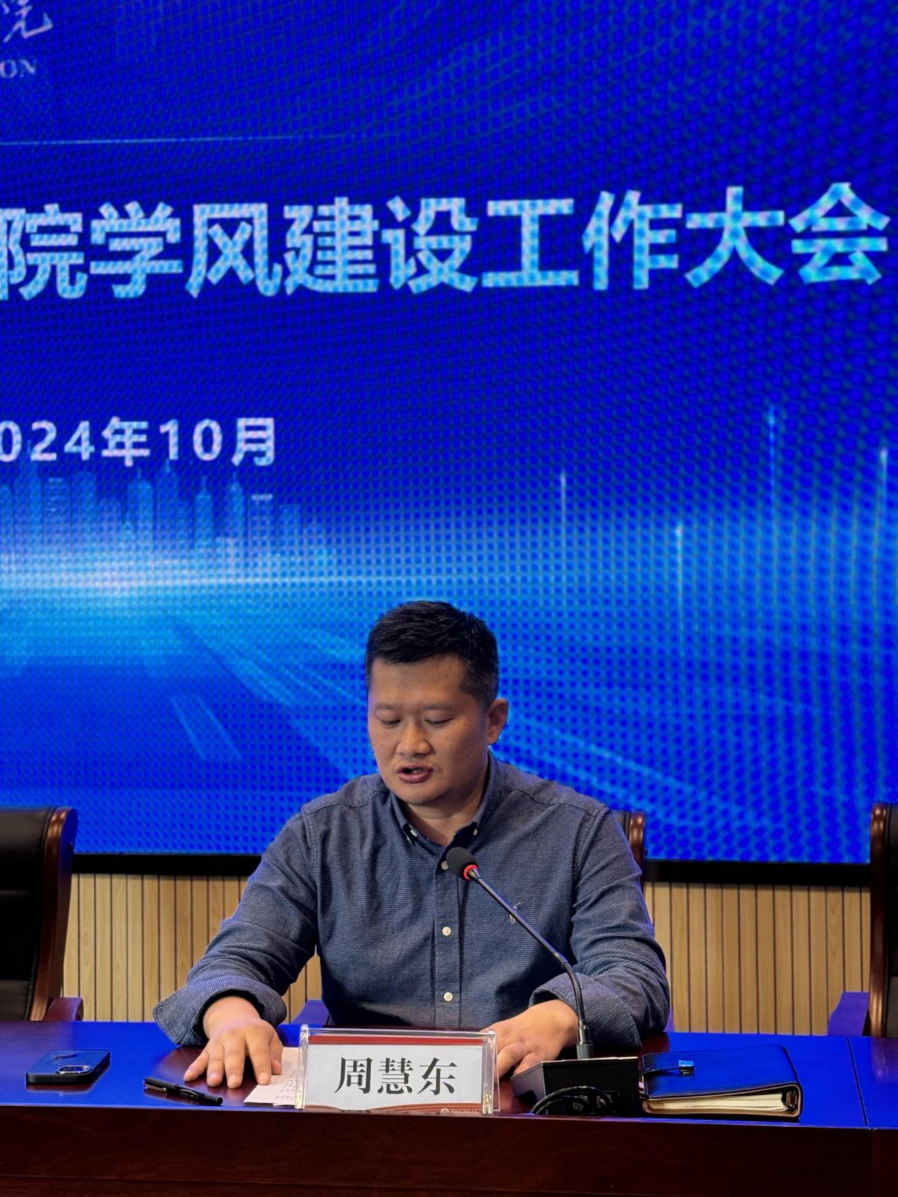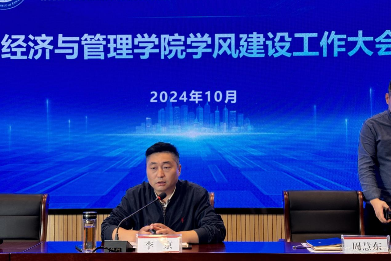 李京在大会上表示,召开学风建设大会是为了对学院本年度的建设和发展工作进行总结。他指出,学生干部应着力提高对学风建设的认识,各班班长应积极组织和开展学风建设主题班会,引导同学们从思想上认识到学风建设的重要性,将其视为自我提升的过程而非单纯的任务或说教。通过讨论和反思,增强同学们的自我责任意识,明确大学期间的目标和责任,从而激发主动学习的动力。