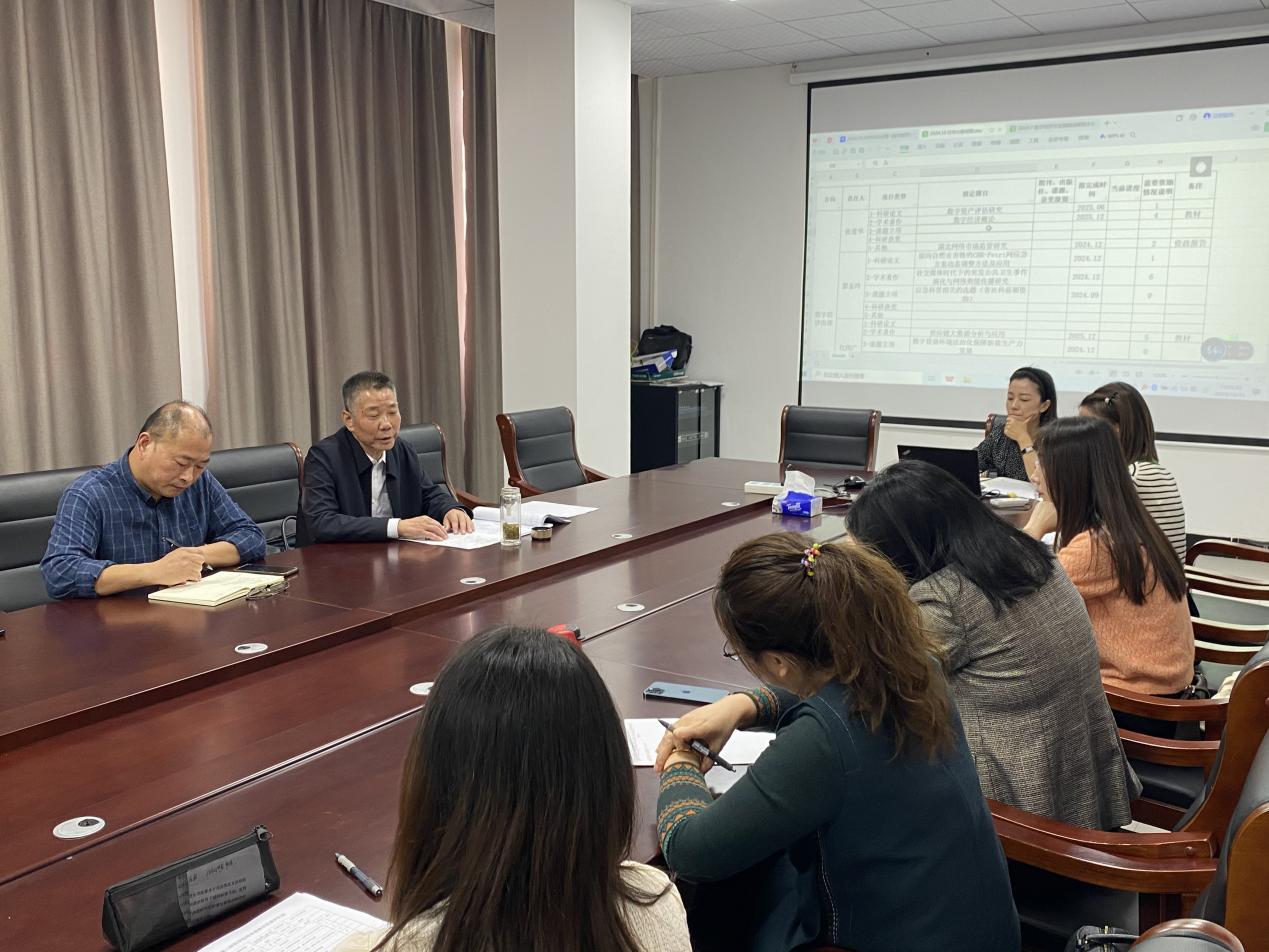 本网讯(通讯员刘迪)10月31日下午,学院召开2024年数字经济硕士专业学位点建设第三次推进会,院党委书记刘元锋、院长陈池波、财务处副处长张爱华、科研处副处长贺青及数字经济硕士专业学位点骨干教师参加,副院长常静主持会议。