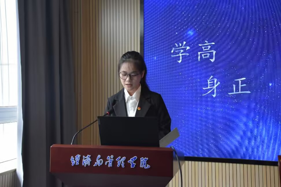 李朝阳发言,回顾了过去一年经管学生会在学术、科研、文体活动和社会实践等方面取得的成绩,并展望未来,希望经管学生会继续加强自身建设,创新和发展,带领全院学生不断进取。