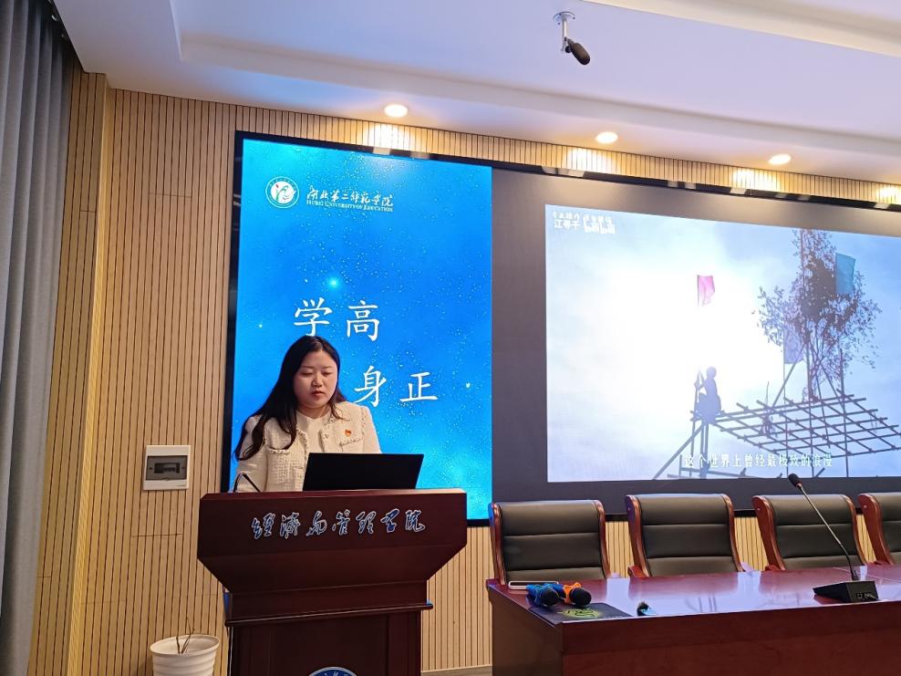 随后,徐梅馨讲述青年的使命担当。她提出,青年学生要积极投身于社会服务,强化责任担当;要坚定理想信念,树立远大目标;要保持乐观心态,在工作和生活中迎难而上;还要在学习专业知识技能的同时参加社会实践活动,实现我价值。
