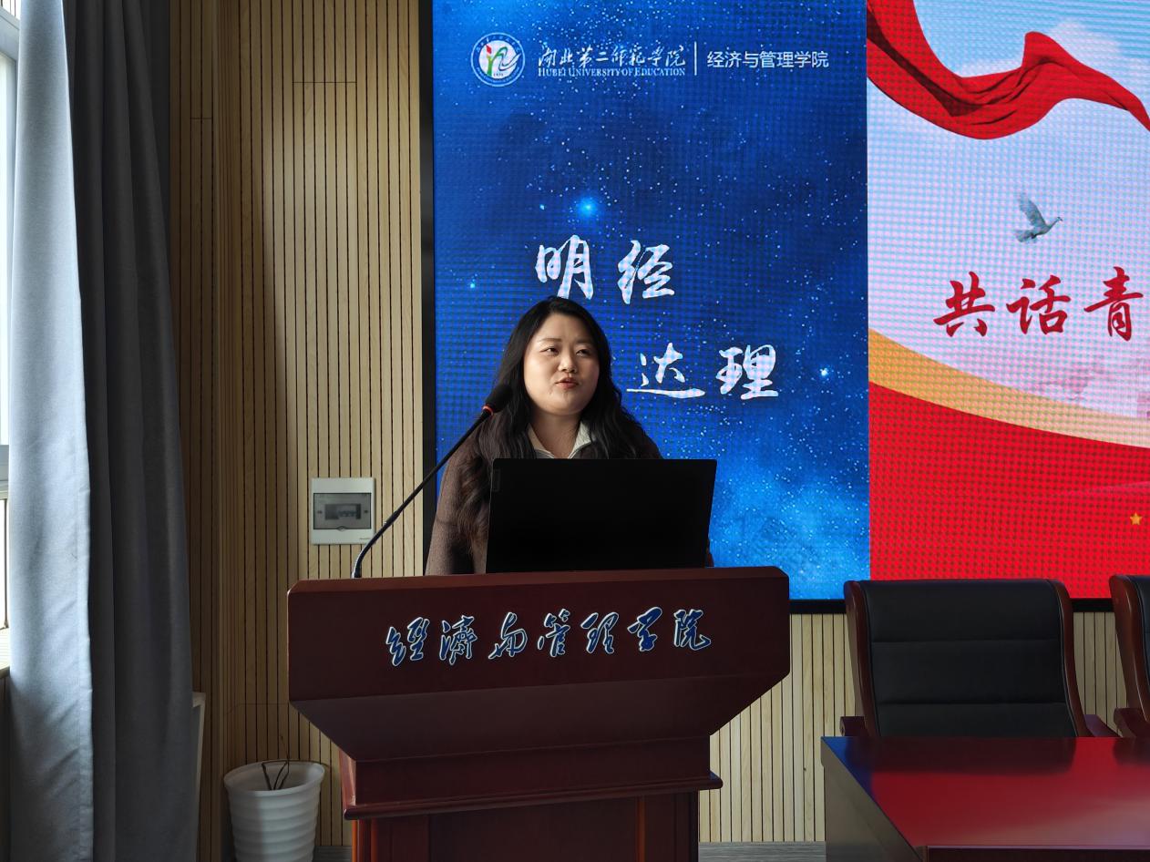 徐梅馨围绕两会精神、党员权利与义务、青年担当的时代内涵、大学生职业规划与家国责任以及实践中的青春担当等方面进行解读,着重强调了青年发展的重要性。她表示,青年学生应做到以下三点:一是要多参加思想政治教育活动,树立正确的三观,坚定政治立场和理想信念;二是要充分利用学校提供的政策咨询、创业指导等服务,大胆尝试,激发潜能;三是要积极参加体育锻炼和文化活动,丰富业余生活,增强体质,保证自己的身心健康。