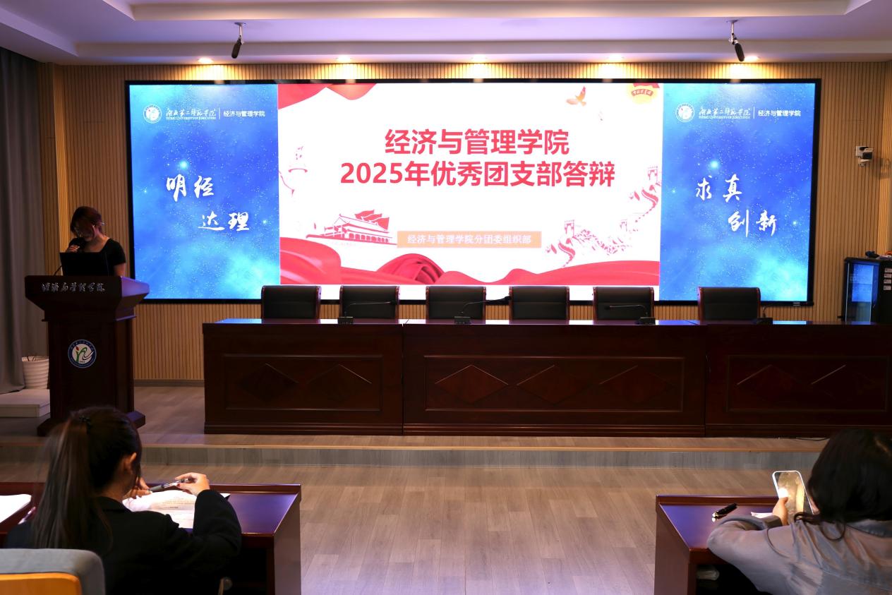 本网讯(通讯员 袁至柔 何心怡)为深入贯彻党的二十大和全国两会精神,提高团员的思想政治觉悟,加强团支部之间的交流与学习,强化团支部凝聚力,切实增强基层团组织活力,4月9日中午,williamhill英国(以下简称“经管院”)于2号楼三楼报告厅开展2025年优秀团支部答辩活动。经管院院团委负责人徐梅馨、学生会指导老师张泉以及分团委学生会主席团成员担任活动评委,共有20名团支部代表参加本次活动。
