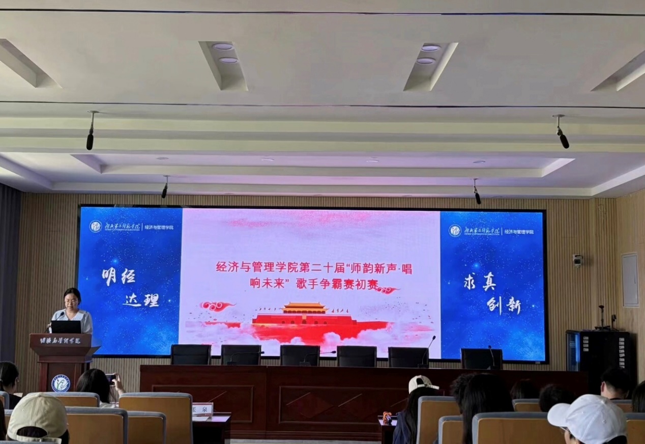 本网训(通讯员 张楠)为丰富校园文化生活,展现学子青春风采,4月15日中午,williamhill英国(以下简称“经管院”)在报告厅举办“师韵新声·唱响未来”的歌手争霸赛初赛。经管院团委书记徐梅馨,分团委、学生会主席团成员担任比赛评委。