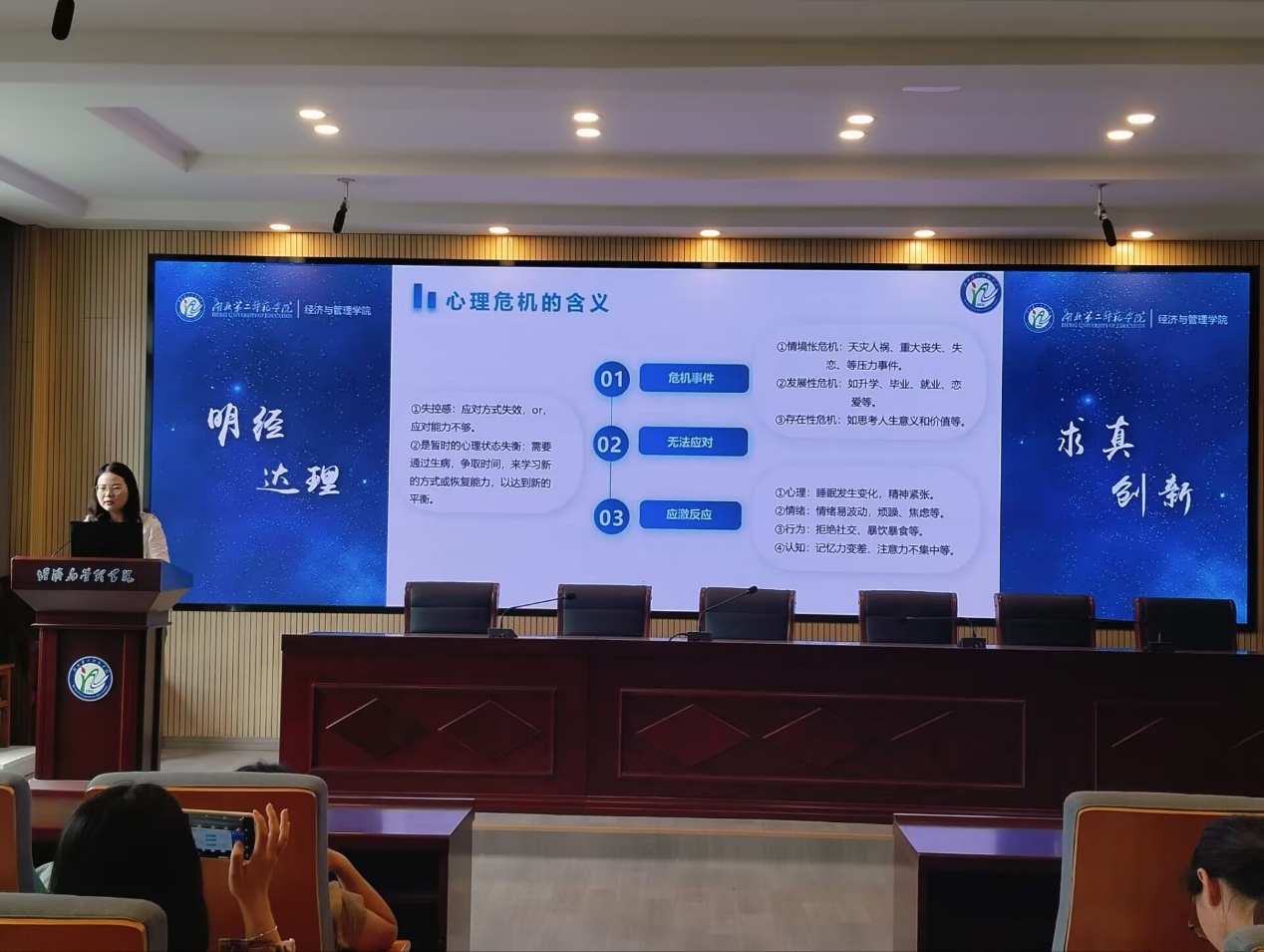 在心理健康基础知识讲解中,杨兰芳深入浅出地介绍了心理健康的标准、心理发展的阶段以及影响心理健康的因素等,帮助心理委员和寝室长建立起对心理健康问题的正确认知。通过生动的案例分析,学员们了解到心理问题并非遥不可及,而是需要在日常生活中细心观察与关注。在常见心理问题识别环节,详细介绍了焦虑、抑郁、强迫等常见心理问题的表现形式与识别方法。通过现场模拟与互动问答,学员们学会了如何从同学的言行举止中捕捉到心理问题的信号,为及时干预打下基础。沟通技巧是本次培训的重点内容之一。通过角色扮演、小组讨论等形式,向学员们传授了有效倾听、积极反馈、共情等沟通技巧。学员们在实践中学习如何与同学建立信任关系,如何在沟通中给予同学支持与帮助,同时也学会了如何避免在沟通中可能产生的误解与冲突。心理危机干预是培训中的难点部分,杨兰芳强调了心理危机干预的重要性与紧迫性,并详细介绍了心理危机干预的流程与方法。学员们通过案例分析与模拟演练,学会了在面对心理危机时如何保持冷静、如何采取有效的干预措施,以及如何及时向专业人员寻求帮助。最后,杨兰芳对我校的心理求助渠道进行了详细介绍,且与大家交流了学院“心灵解忧”辅导员工作室和经管院秘密罐头官Q的线上咨询预约渠道,这使得广大心理委员以及寝室长们能更加清晰地了解求助通道。