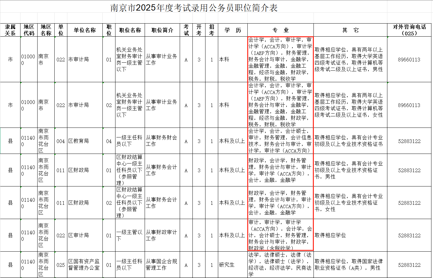 扫码查看南京市2025年度考试录用公务员职位简介表