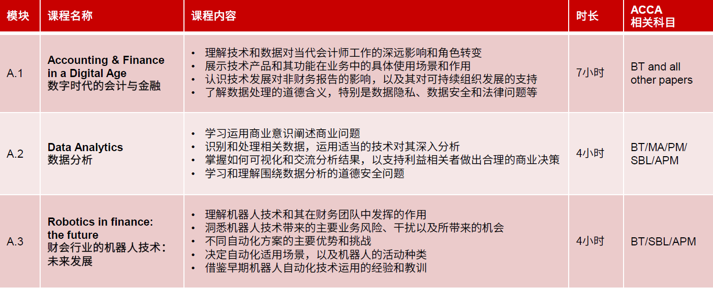 ACCA课程根据现代商务社会对财经会计人才的实际需求进行系统开发。课程体系严谨全面、完善及先进兼备,以一套综合能力框架为基础,覆盖财务、财务管理、审计、税务、战略管理会计及公司报告等全面知识技能,并注重复杂条件下分析能力、决策能力、判断能力的培养。