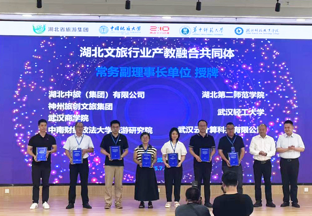 本网讯(通讯员 周玺)2025年7月4日,湖北文旅人才高质量培养研讨会暨文旅行业产教融合共同体成立大会在武汉召开,来自省内外的100多家文旅行业上中下游企业、行业协会、相关高校及行业组织、科研机构等单位参加大会。我校入选湖北文旅行业产教融合共同体常务副理事长单位。