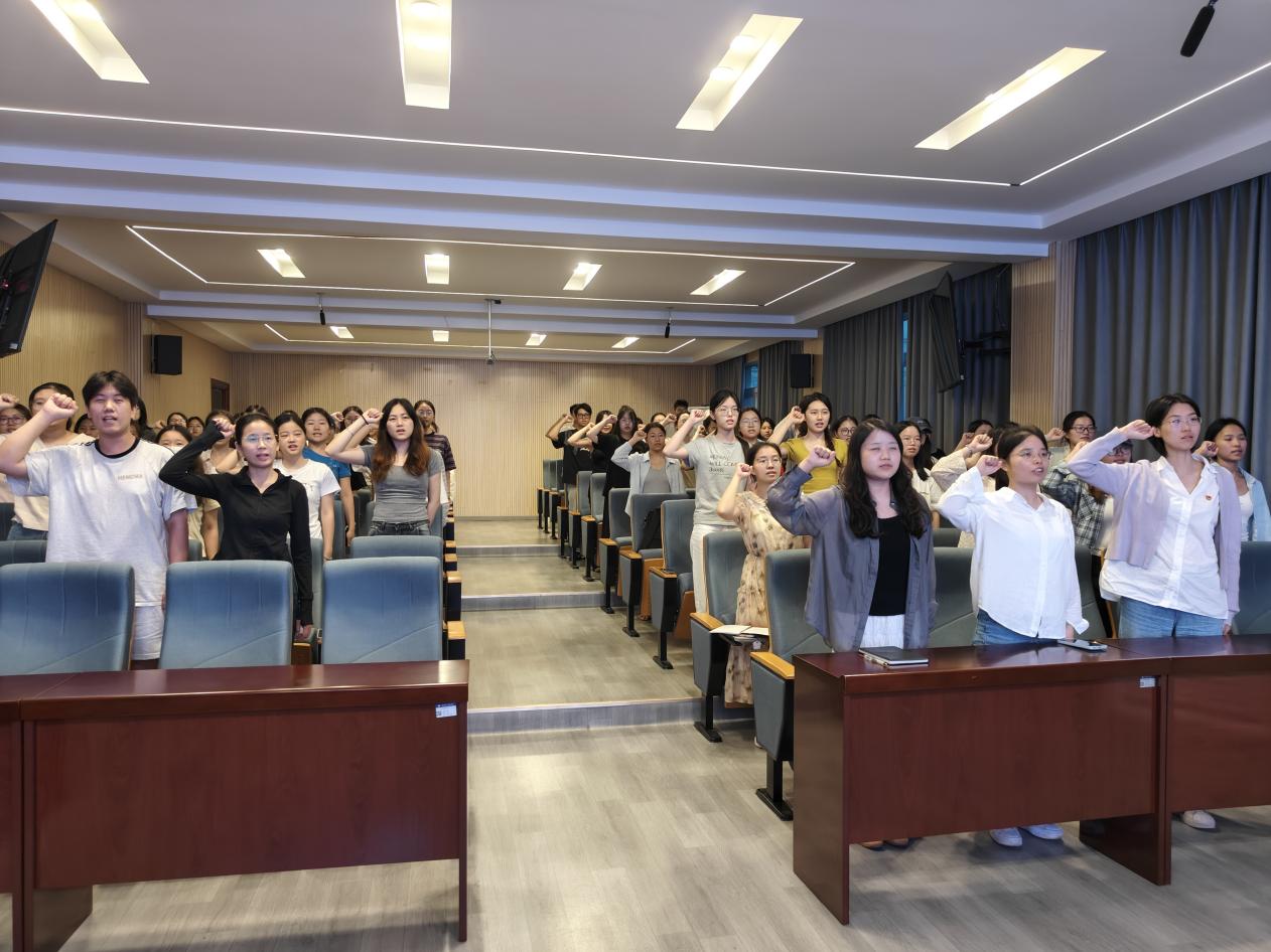 活动在庄严的《国歌》声中拉开序幕,全体党员肃立,齐唱国歌。随后,在余秋霖同志的领誓下,全体党员高举右拳重温入党誓词,进一步坚定了党员们为共产主义事业奋斗终身的信念。