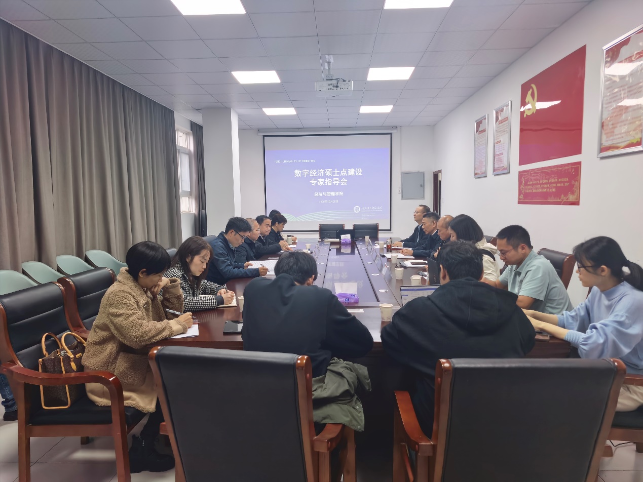 本网讯(通讯员 许莹莹)10月20日下午,经济与管理学院在2号楼五楼会议室召开“数字经济硕士学位点建设专家指导会”。会议邀请数字经济专业学位教学指导委员会委员、华中科技大学经济学院院长张建华教授、中南财经政法大学经济与贸易学院副院长石军伟教授、湖北经济学院数字经济学院副院长陶珍生教授到会指导。学院党委书记刘元锋、院长陈池波以及申硕工作专班成员参加会议。会议由院长陈池波教授主持。
