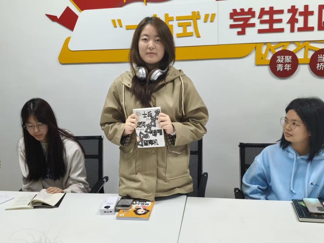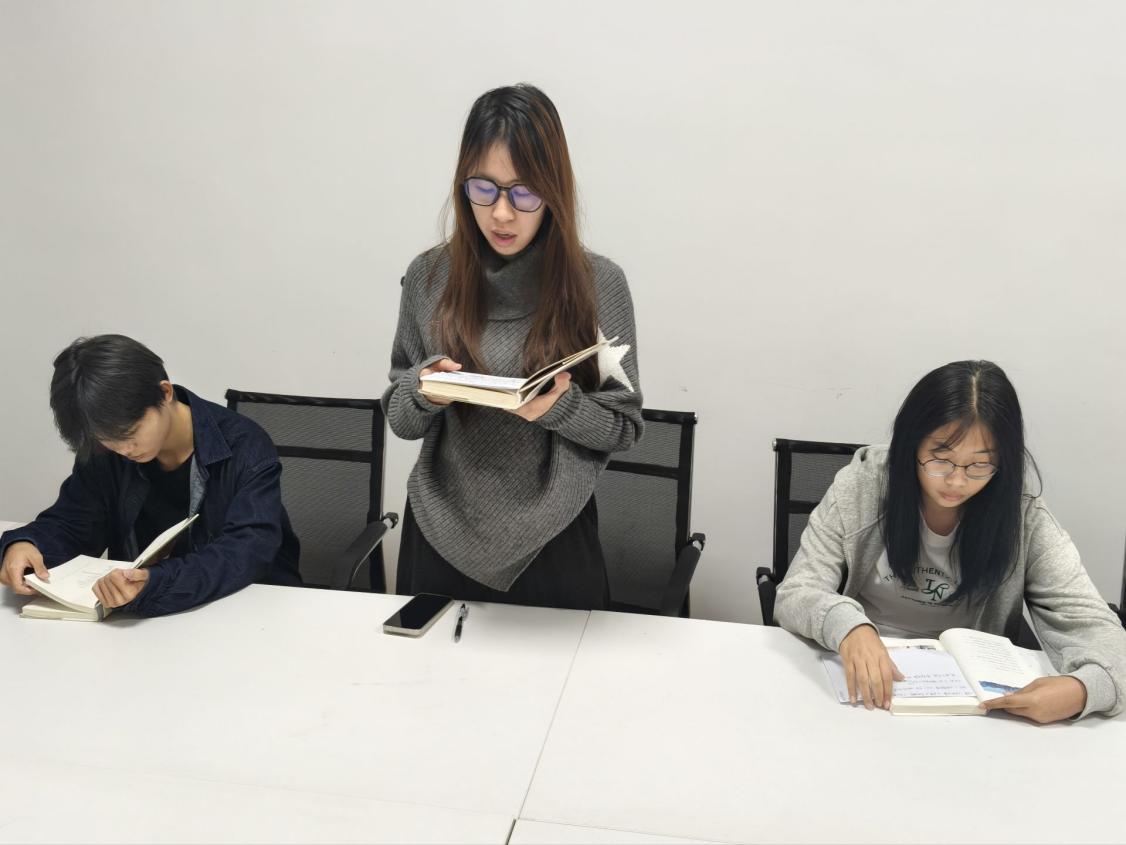 活动由分部会长徐欣恬主持,她向在场的老师和同学们致以亲切问候,当下时代,碎片化的信息占据了太多阅读空间,在内卷的浪潮裹挟中,静下心来读书成了奢侈的浪漫。她倡议大家将手机装进口袋,把视线从电子屏转回书籍,以书会友,不仅分享书中的故事,也分享自己的故事。
