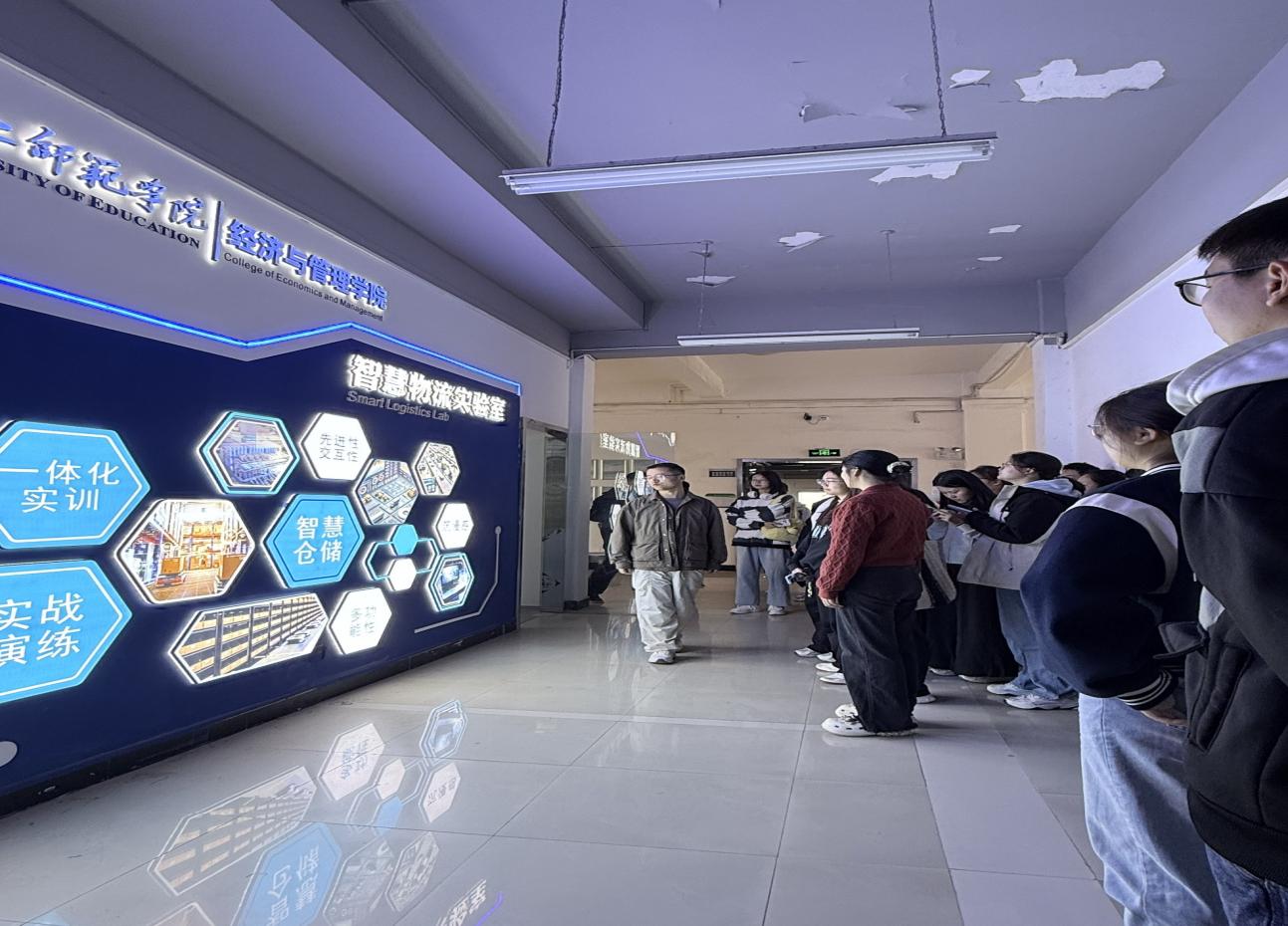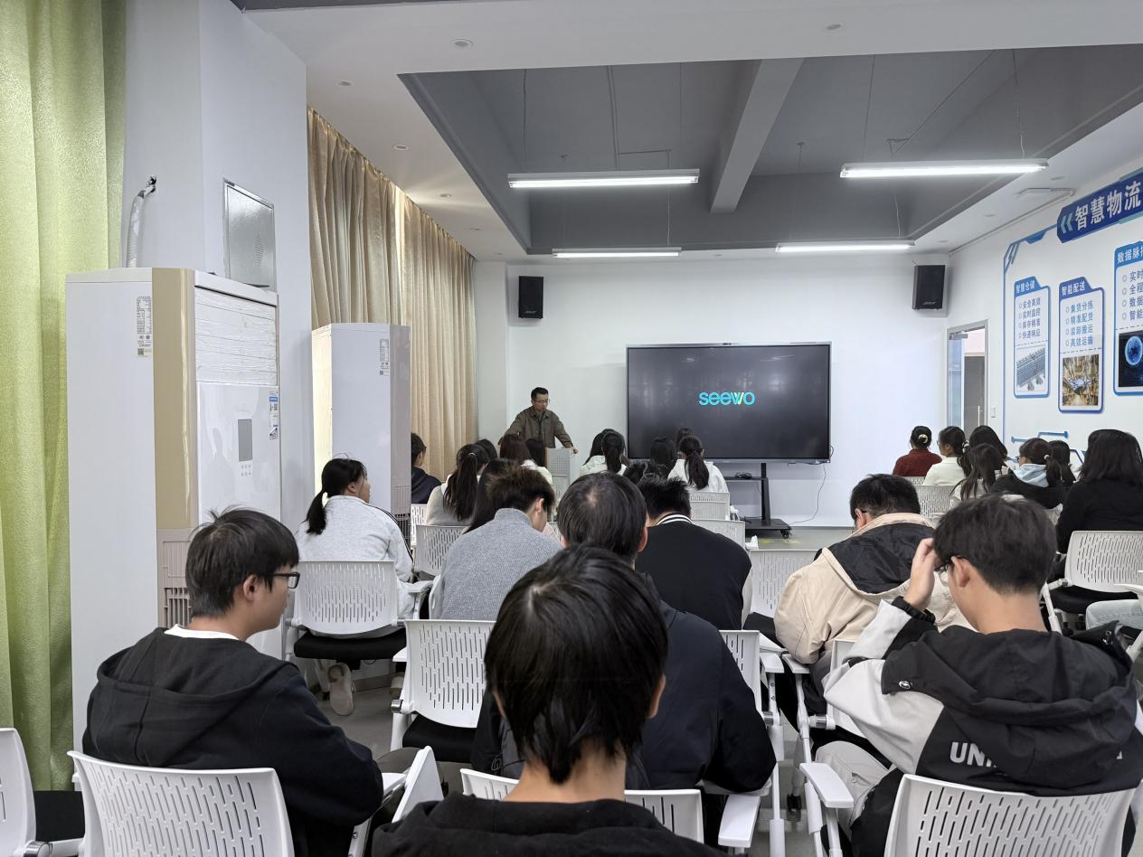 本网讯(通讯员 王亚婷)11月12日上午,学院2025级物流管理1班、2班(以下简称“25物管班”)在创新创业学院三楼C5教室开展智慧物流实验室参观活动,物流系教师曾智和申红艳带领全体25物管班学生进行参观,并同步讲解。