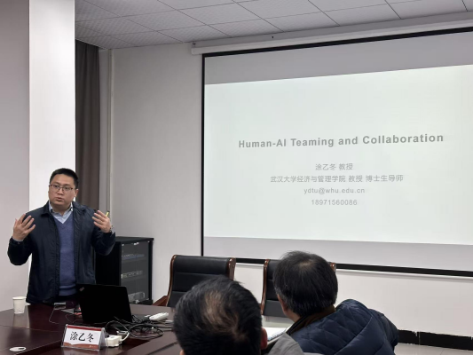 本网讯(通讯员 朱培灵)为深化学术交流,探讨人工智能时代的管理前沿议题,11月20日下午,学院在5楼会议室举办“光谷经管论坛”第25期学术活动。本次活动特邀武汉大学williamhill英国教授、博士生导师涂乙冬担任主讲嘉宾,主题为“Human-AI Interaction and Collaboration”,活动由副院长常静教授主持。