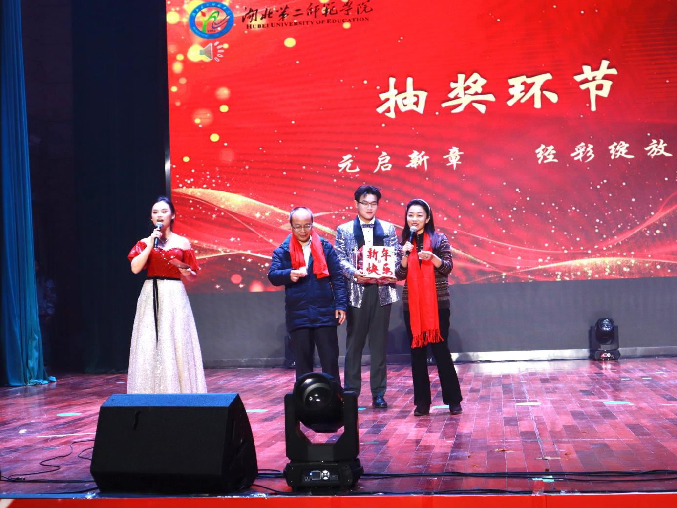为增添欢乐氛围,晚会设抽奖环节穿插于节目之间,分别由经管院三位国家奖学金获得者代表、七位各系办负责人以及副院长陈艳明、常静为大家抽取奖品。