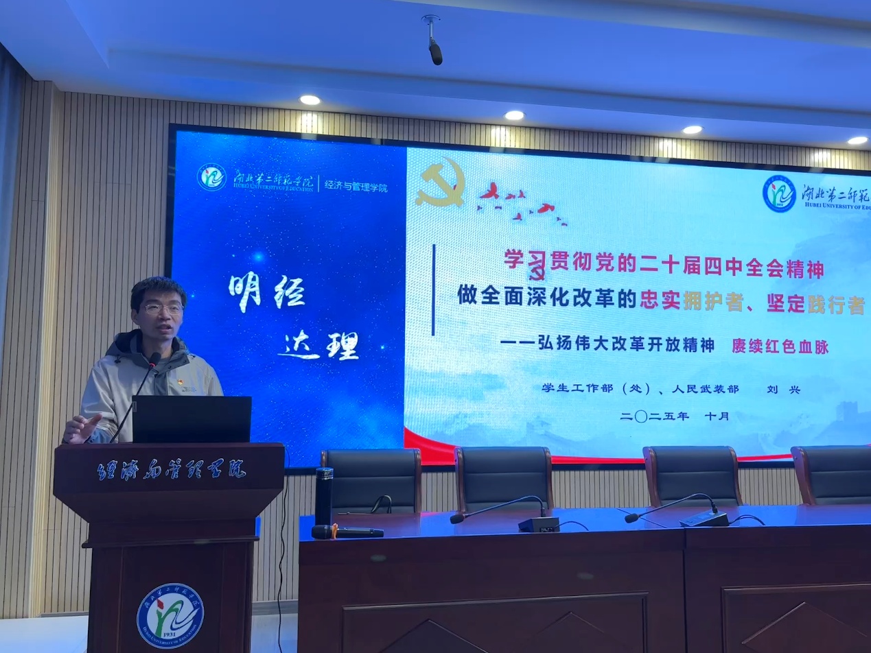 刘兴以“什么是中央全会”为引,开启本次课程。他详细介绍了党的二十届四中全会的主要议程,着重指出中国共产党第二十届中央委员会第四次全体会议审议通过的《中共中央关于制定国民经济和社会发展第十五个五年规划的建议》是关键时期的关键部署,明确了2026年至2030年“十五五”时期的战略任务和重点方向。他强调“十五五”时期是“基本实现社会主义现代化夯实基础、全面发力的关键时期”,在实现中国式现代化进程中具有承前启后的重要地位。刘兴以大学生进行职业生涯规划为例,阐释了国家制定“十五五”规划的必要性,强调正如个人需要规划引领成长,国家的发展更需要科学的蓝图指引方向、凝聚力量。刘兴指出要理解“现代化”、“创新”、“精神”等词的核心概念,从而把握二十届四中全会的主要内容。刘兴阐明以“解放思想、求真务实,敢闯敢试、开放开明,创新进取、攻坚克难,合作共赢、强国富民”为内涵的伟大改革开放精神,并指出这是当代中国人民最鲜明的精神标识。他勉励大学生将“解放思想、求真务实”的精神基质融入到日常学习与生活中。