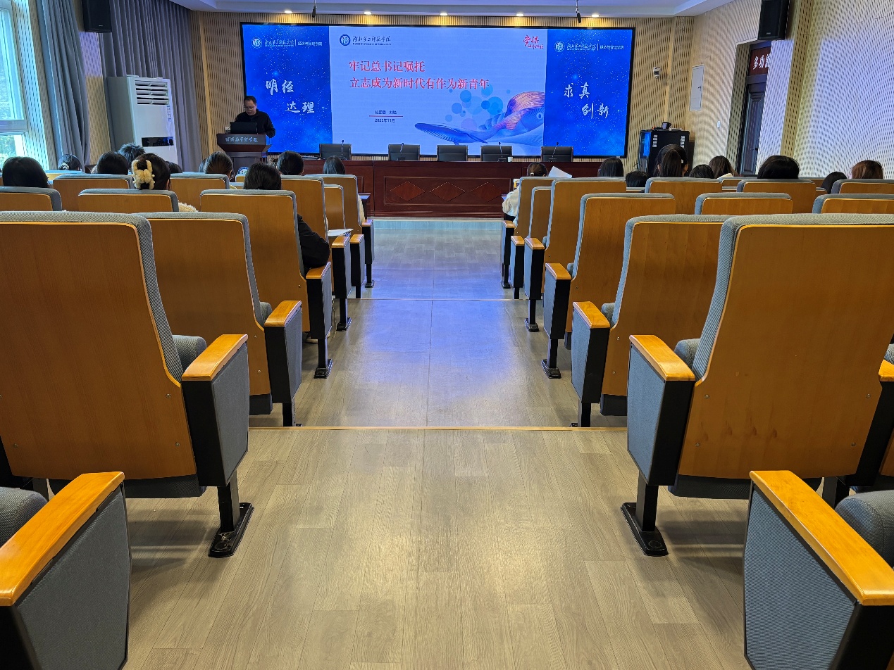 本网讯(通讯员 刘艾倾)11月21日中午,williamhill英国学生党支部发展对象培训班开展“牢记总书记嘱托,立志成为新时代有作为新青年”主题课程。本次课程由校团委书记刘锐授课。