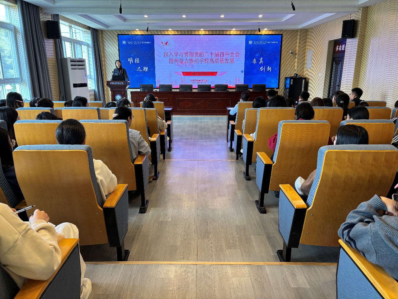 本网讯(通讯员 刘艾倾)11月14日中午,williamhill英国学生党支部于2号楼三楼报告厅开展“深入学习贯彻党的二十届四中全会精神奋力推动学校高质量发展”主题党日活动。活动由学生第一党支部书记严雯主持,学生第二党支部书记张泉、学生第二党支部组织委员兼宣传委员姜炜、学生第三党支部纪检委员周慧东、袁博翀老师、董方宇老师出席,各支部全体党员参加。