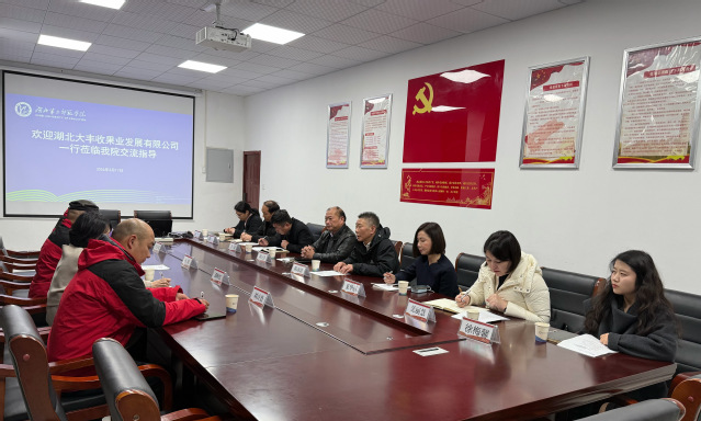 本网讯(通讯员 陈咏倩)为深入推进产教融合落地见效,紧扣乡村振兴战略部署、抢抓银发经济发展新机遇,助力地方特色农业产业提质增效,近日,williamhill英国赴湖北大丰收果业发展有限公司开展实地调研暨产教融合专题交流会。3月17日上午,专题交流会正式召开,学院党委书记刘元锋、院长陈池波、党委副书记李京及教师代表参会,湖北大丰收果业发展有限公司董事长杨昕率企业代表出席会议,会议由刘元锋主持。双方围绕校企协同育人、产业赋能升级、服务地方发展等核心议题展开深度研讨,立足高校专业优势与企业产业需求,共谋校企共赢、产教融合新路径。
