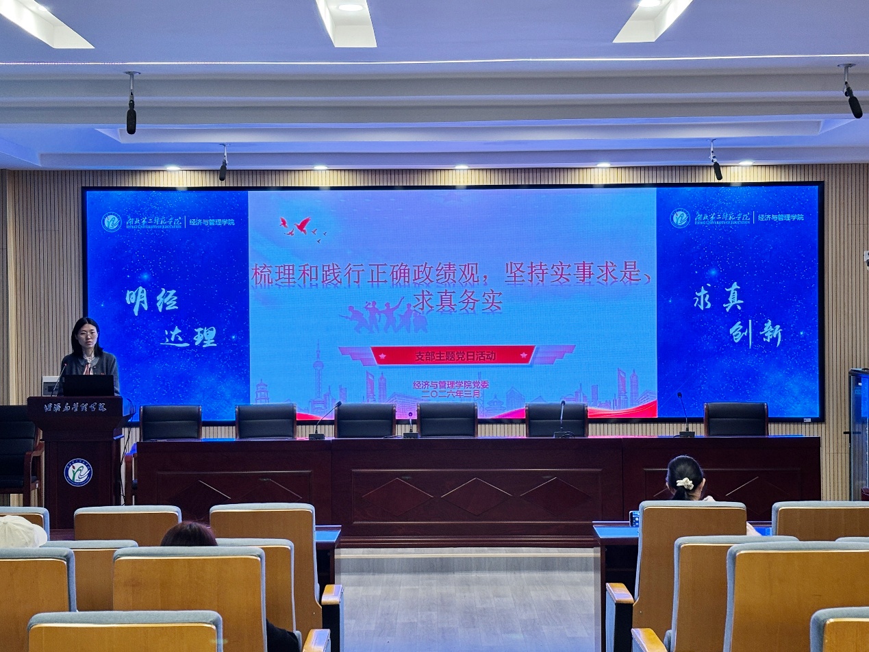 本网讯(通讯员 刘艾倾)为深入学习贯彻党的创新理论,教育引导全体党员进一步树立和践行正确政绩观。3月30日晚上,williamhill英国学生第一党支部于2号楼三楼报告厅开展“树立和践行正确政绩观,坚持实事求是、求真务实”主题党日活动。由经管院学生第一党支部书记严雯主持,支部全体党员参加此次活动。