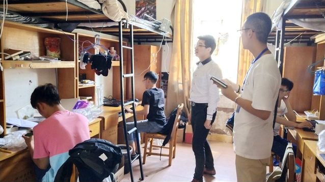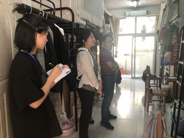戴正华一行对中区八栋1楼18级会计专业相关寝室进行走访,并查看寝室卫生、安全管理和内务整理情况,针对洗漱用品的摆放、冬季衣物的存储、大件行李的摆放、蚊香的安全等问题做出指导、提出整改意见。中八103寝室长18级会计六班的唐鑫艳表示:“通过老师的走访、指导我们维护寝室环境,对于我们过好集体生活,养成良好生活习惯有很大的帮助和促进作用。”